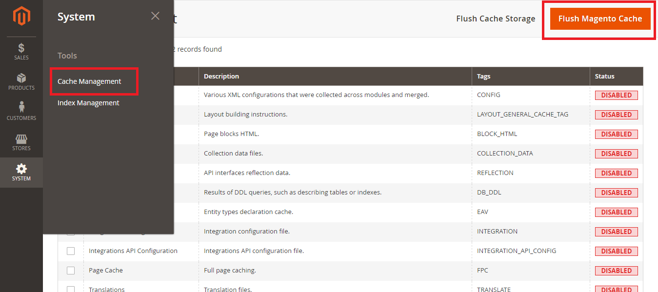 Or go to System > Cache Management. Click the following buttons to completely clear the store cache: