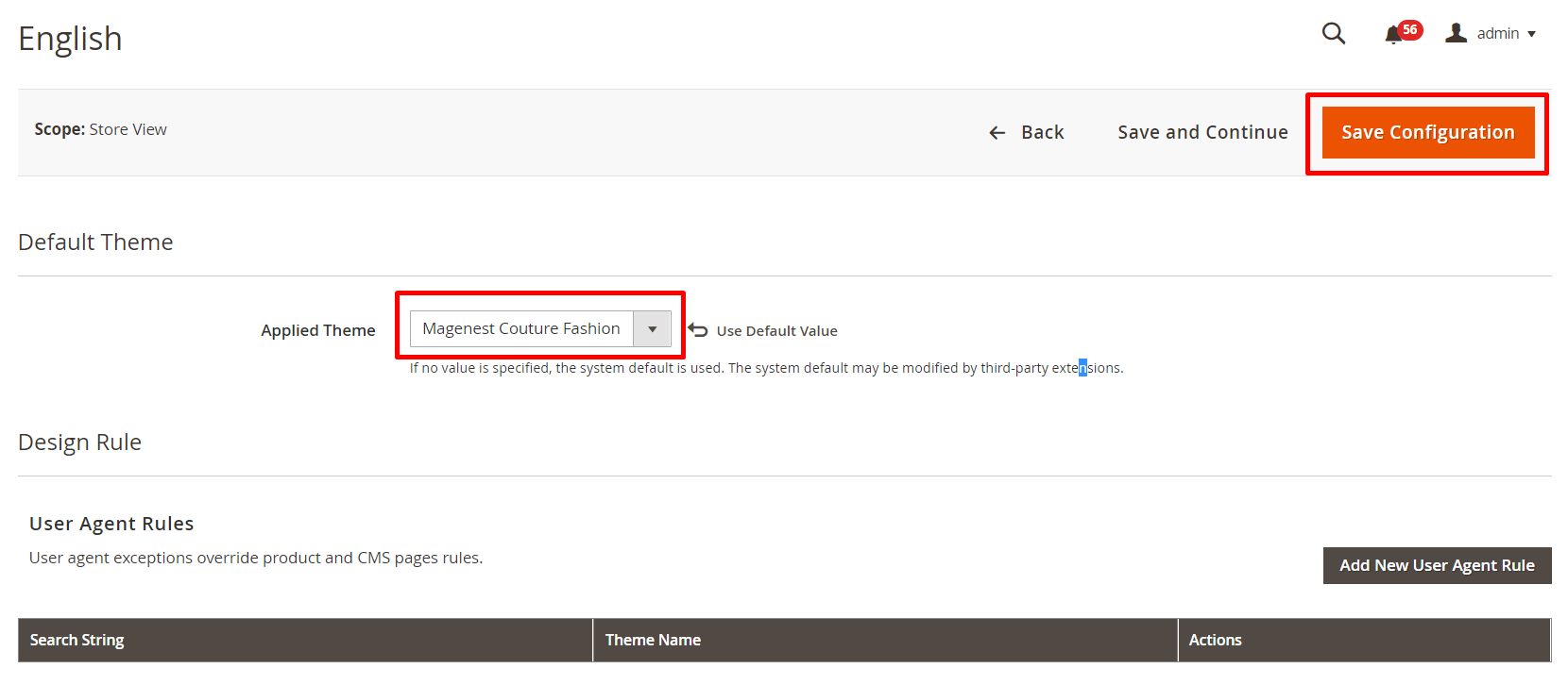 Then in Applied theme options, choose Magenest Couture Fashion > Save configuration