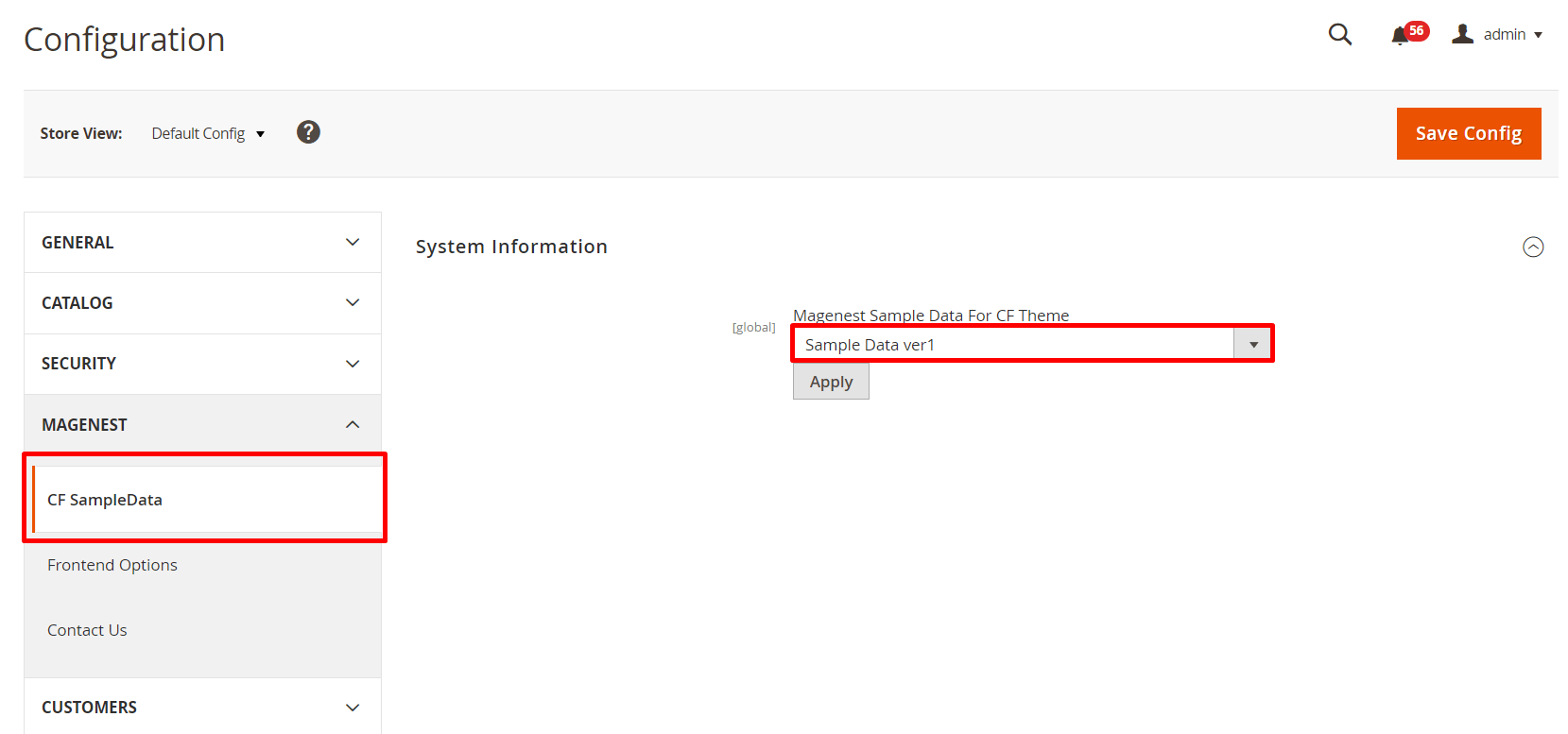 On the admin sidebar, go to Stores > Configuration > Magenest > CF Sample Data