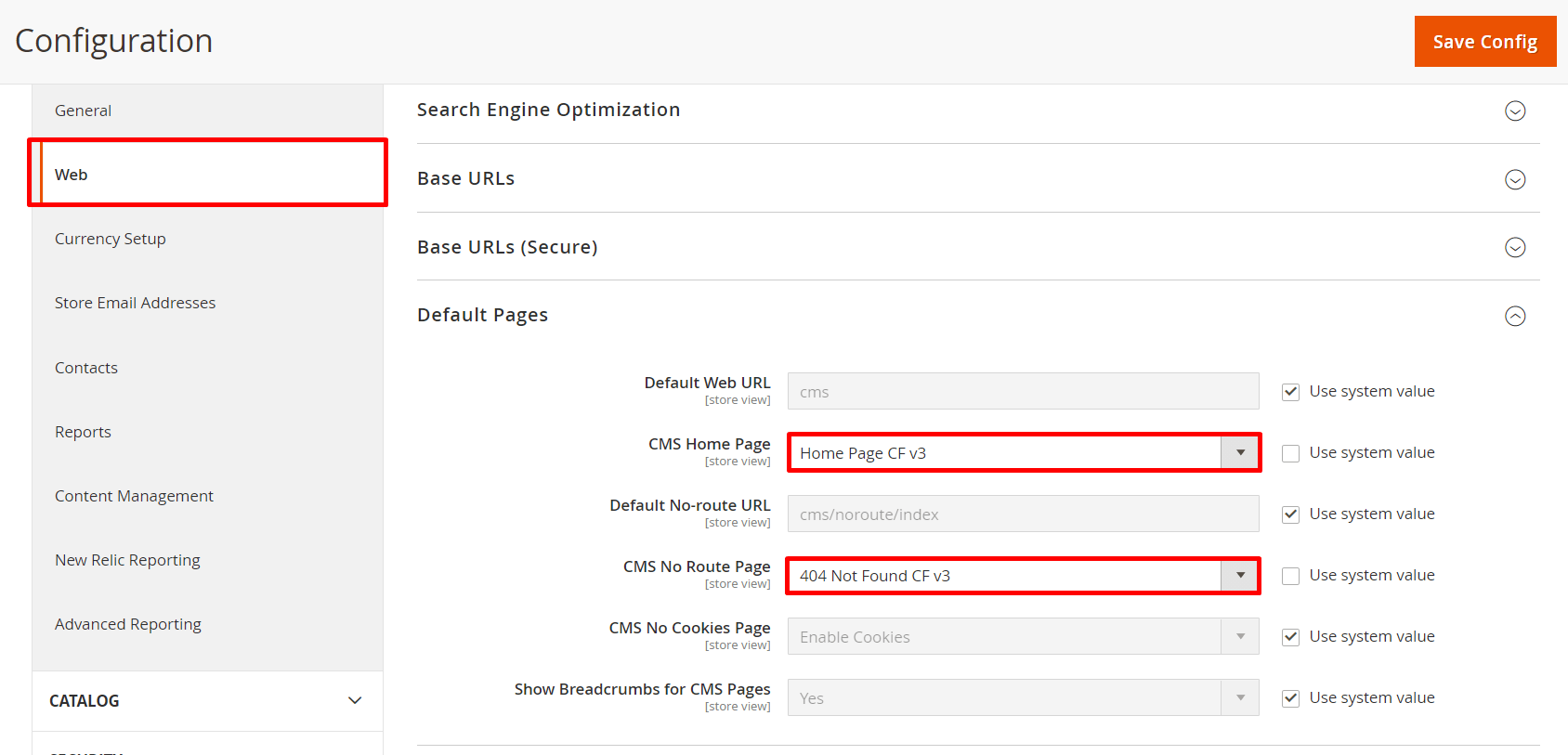 On the admin sidebar, go to Stores > Configuration > General Web > Default Pages