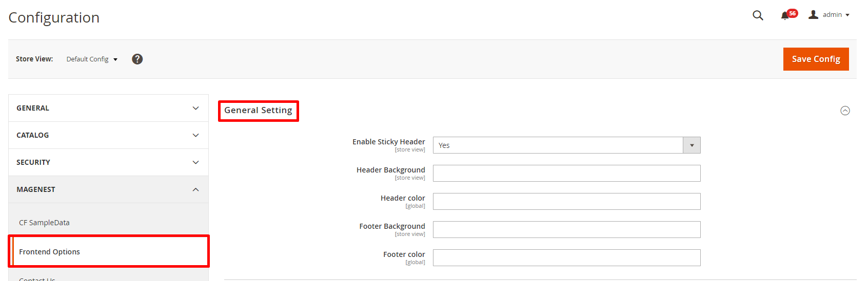 On the admin sidebar, go to Stores > Configuration > Magenest > Frontend Options > General Setting