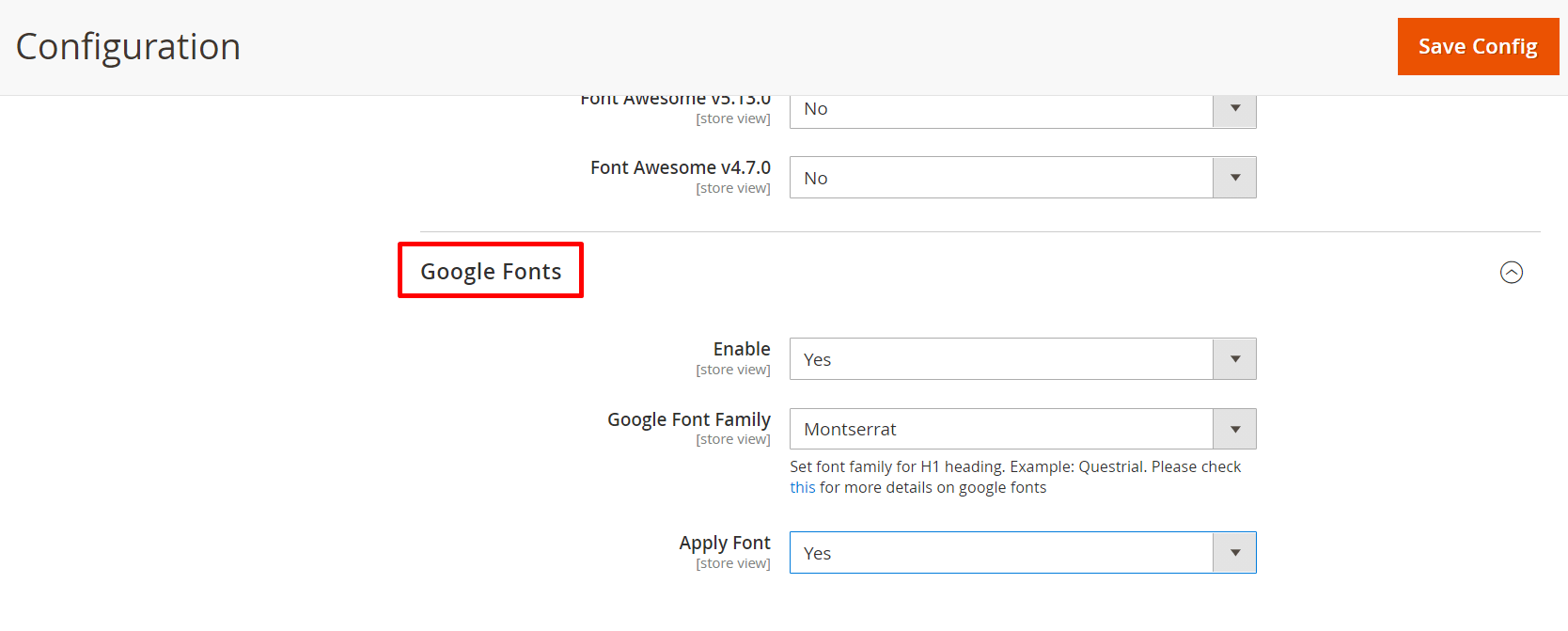 - Apply Font: Choose Yes if you want to apply your chosen font on Store View