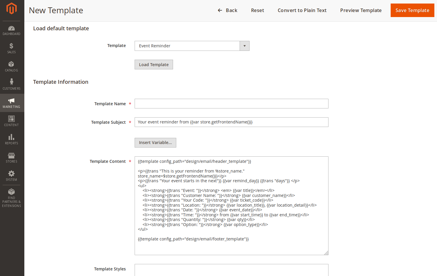 You can use the Default Email Template or you can customize your own email template in Marketing > Email Template. Any template created in there will be listed in the email template drop-down for you to select.