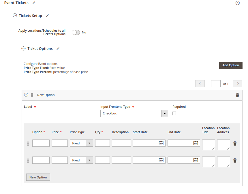 - Apply Locations/Schedules to all Tickets Options: Disable this feature allows creating events where each location will be an option.