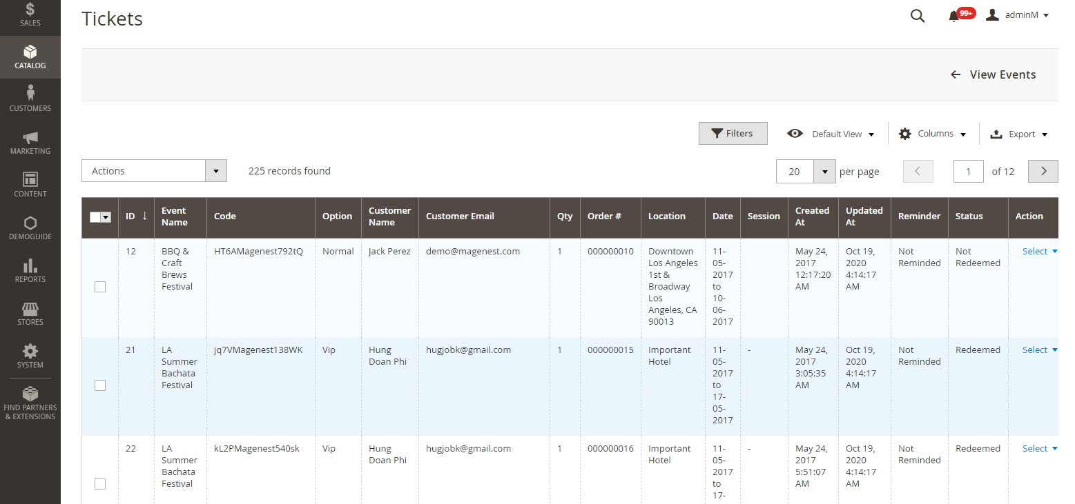 In this table, you can track the customer and the ticket information (Quantity, Location, Date, Time), especially the ticket status (Redeemed or Redeemable).