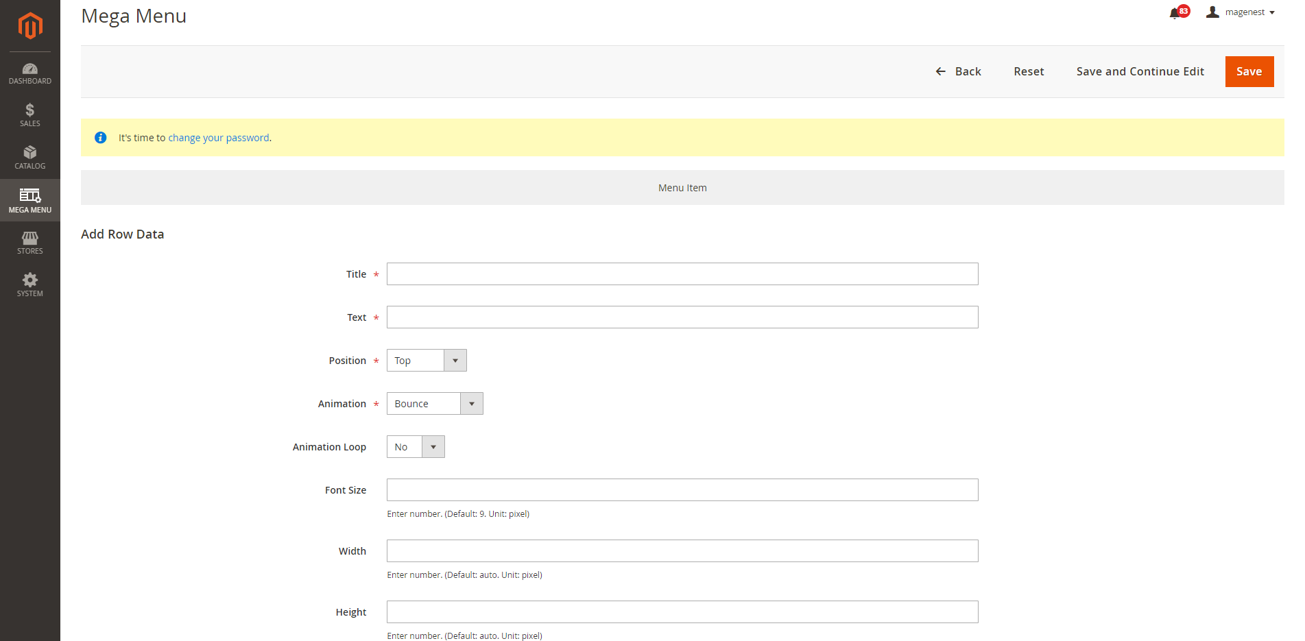 - Go to Mega Menu > Labels, you can manage all the available labels in the grid table.