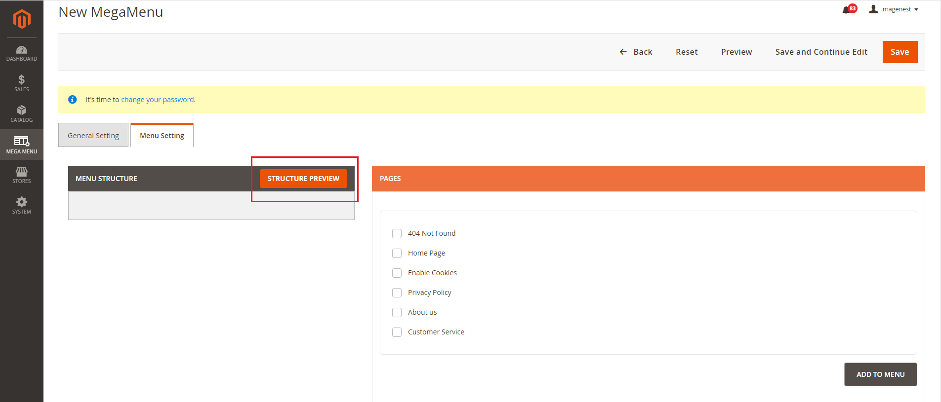 To preview the structure of the menu click Structure Preview