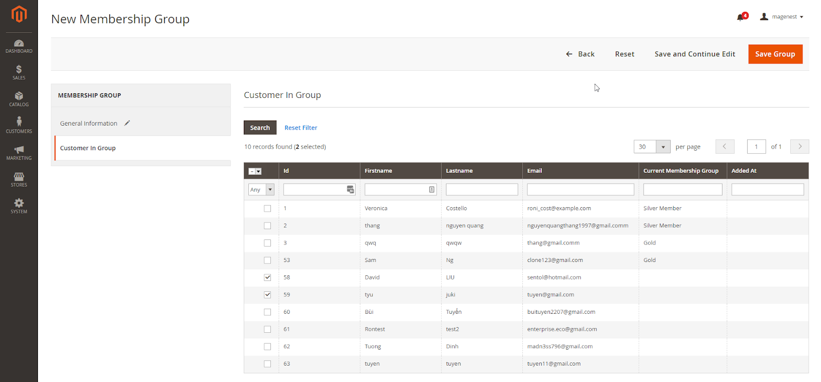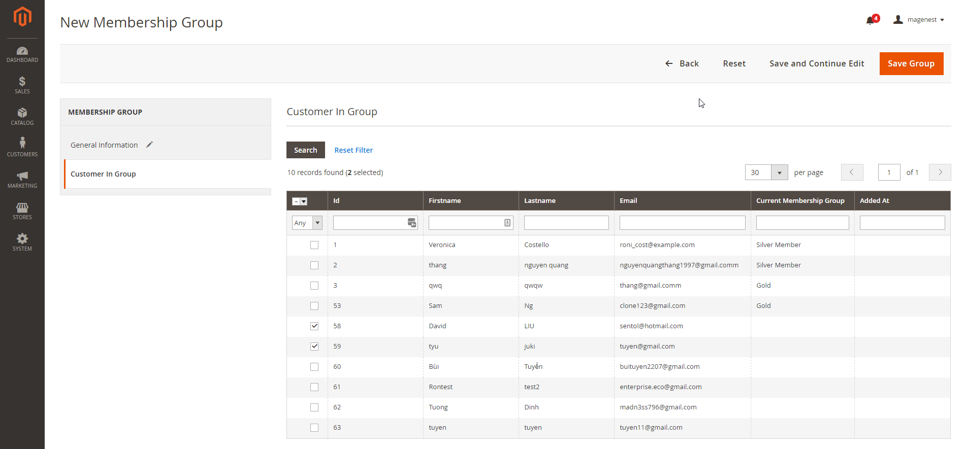 - For example: To change customer "Veronica" from Silver Membership Group to Gold Membership Group, go to Gold Membership Group, select Veronica, then Save Group.