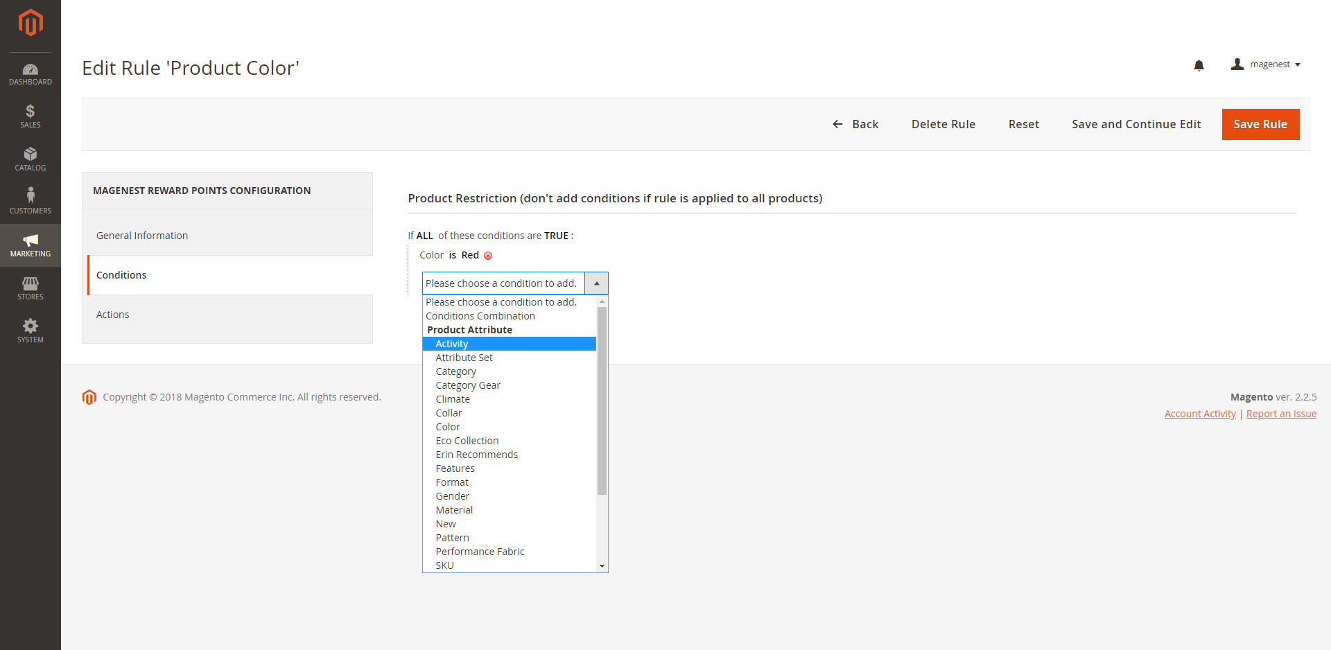 - Catalog rules: Attribute of products to trigger reward points action (attribute set, category...).