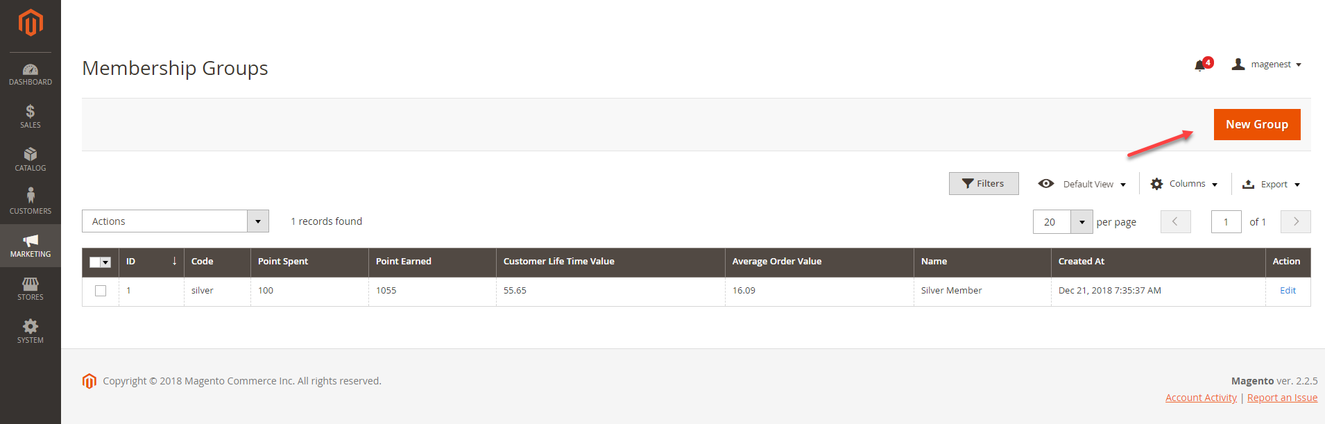 On the Membership groups page, you can manage the created groups in the grid table, or create a new membership group by clicking on the New Group button.