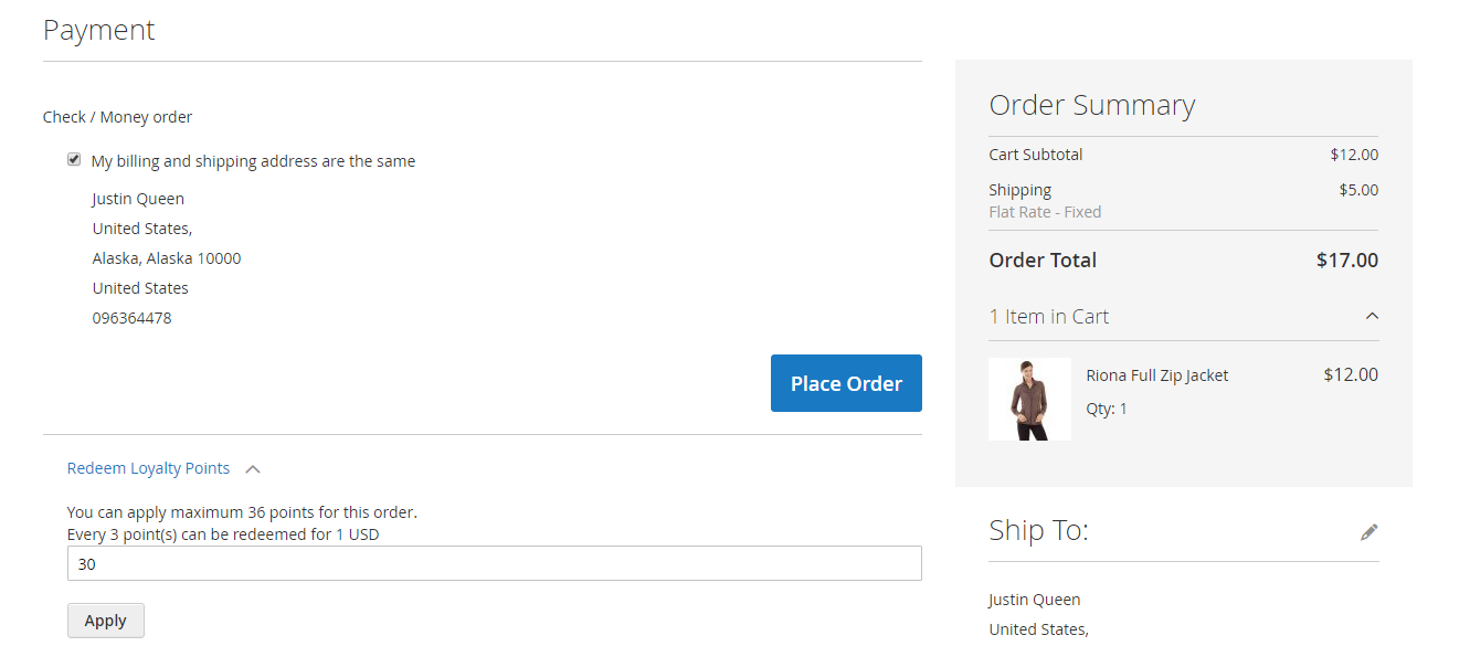 At check out page, customer can enter their available points to be redeemed for money.