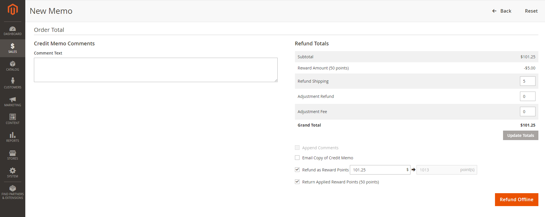 - Refund applied reward points: Refund the reward points that were applied for a discount for this order.