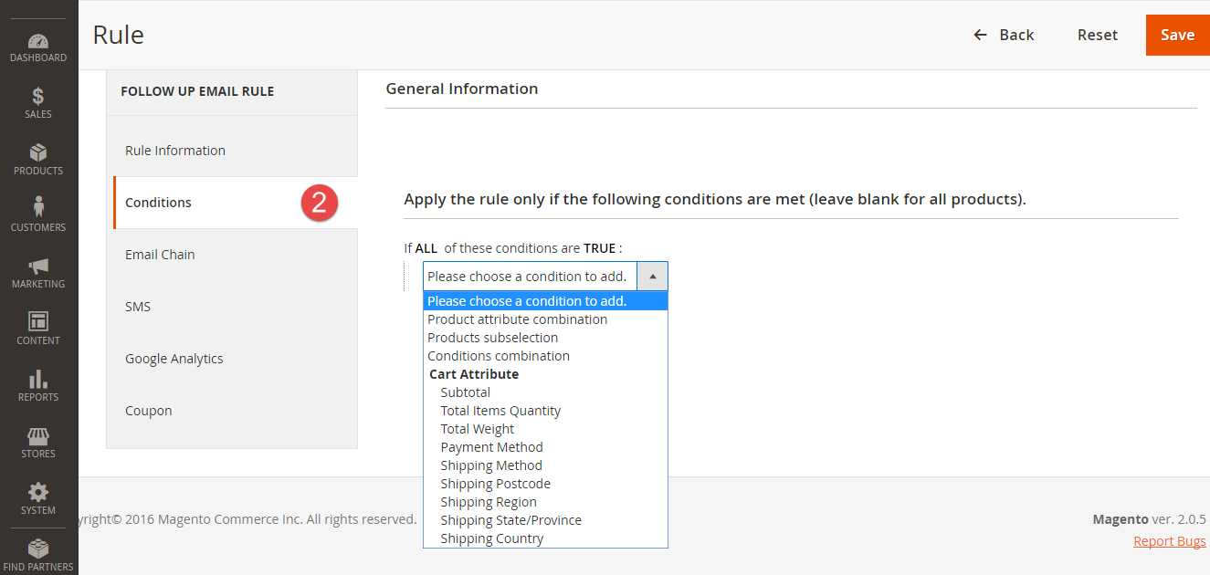 Setting up rules allows you to set additional conditions based on customer details, who will receive certain emails.