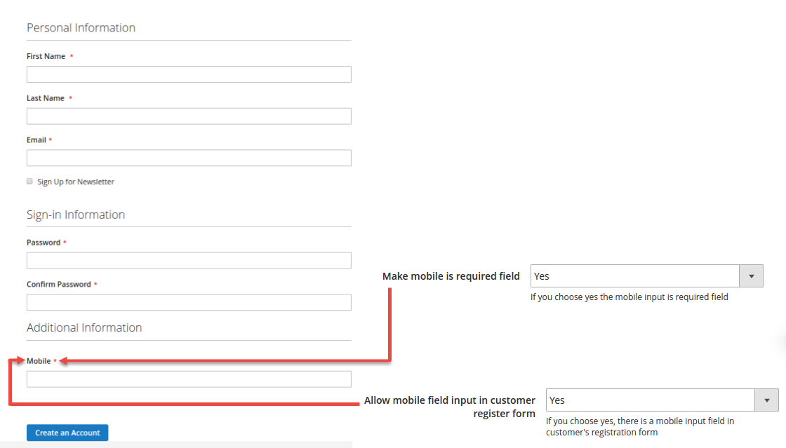 When a customer creates a new account, they will be required to enter their mobile if the owner store wants to use this feature.