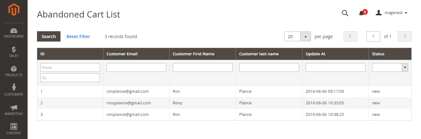 - Allow admin to manage abandoned cart list.