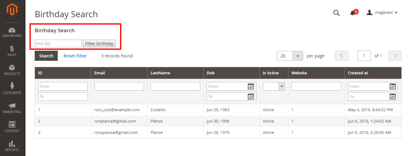 Collect your customers' date of birth in this section. Especially, our extension allows you to search by month, date. This will help the store owner search as well as manage an easy way.