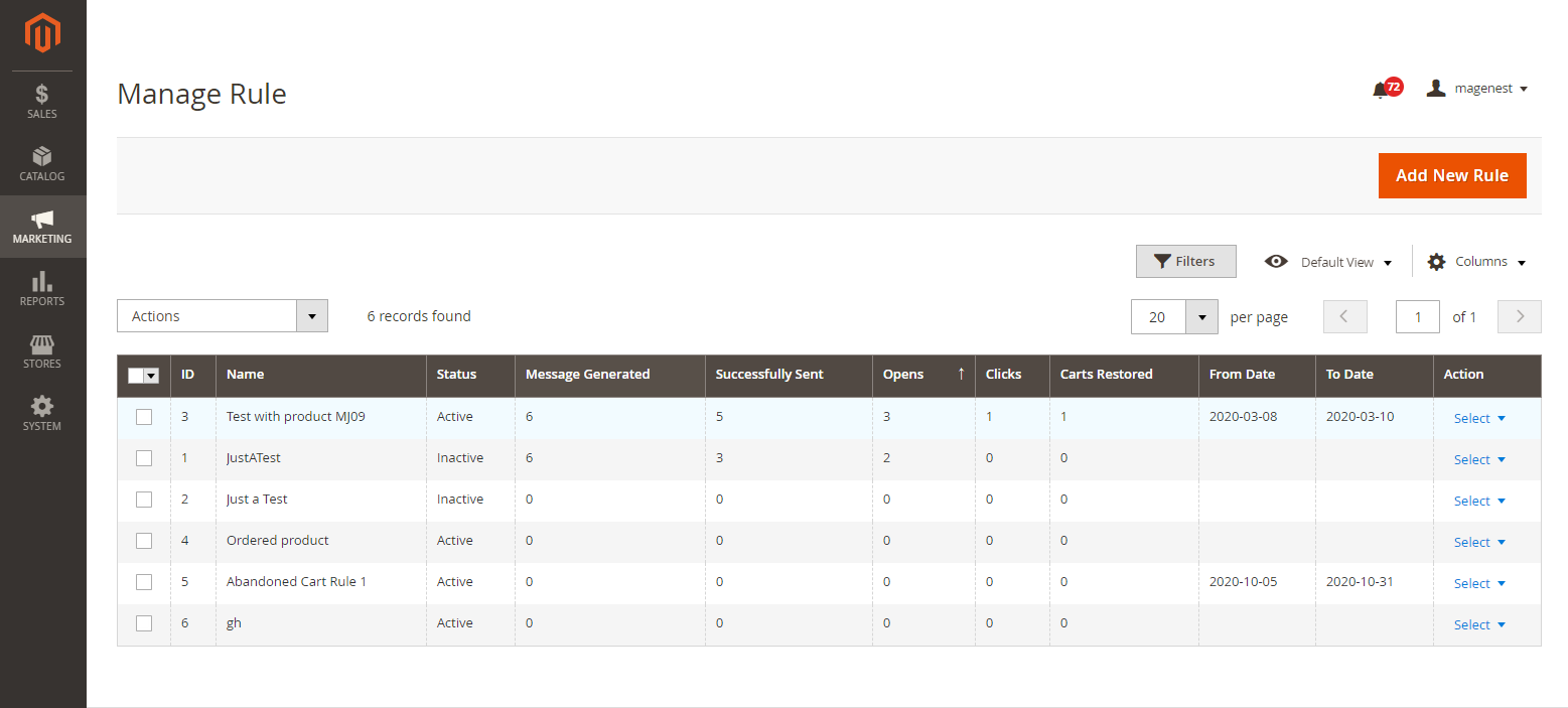 Furthermore, the store owner also can send a manual email by selecting Send now or Cancel in Action column.