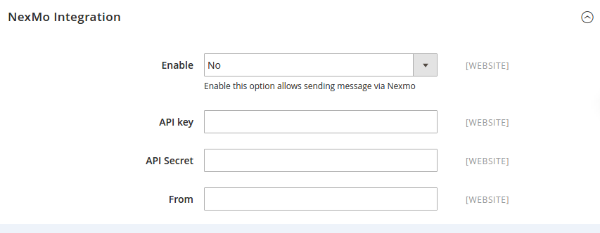 API secret: enter Nexmo API Secret key for the integration.