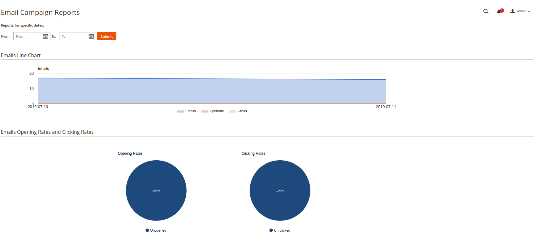 This section is divided into 2 parts: Emails Line Chart and Emails Opening Rates and Clicking Rates which are really helpful for catching the behavior of customers by statistics.