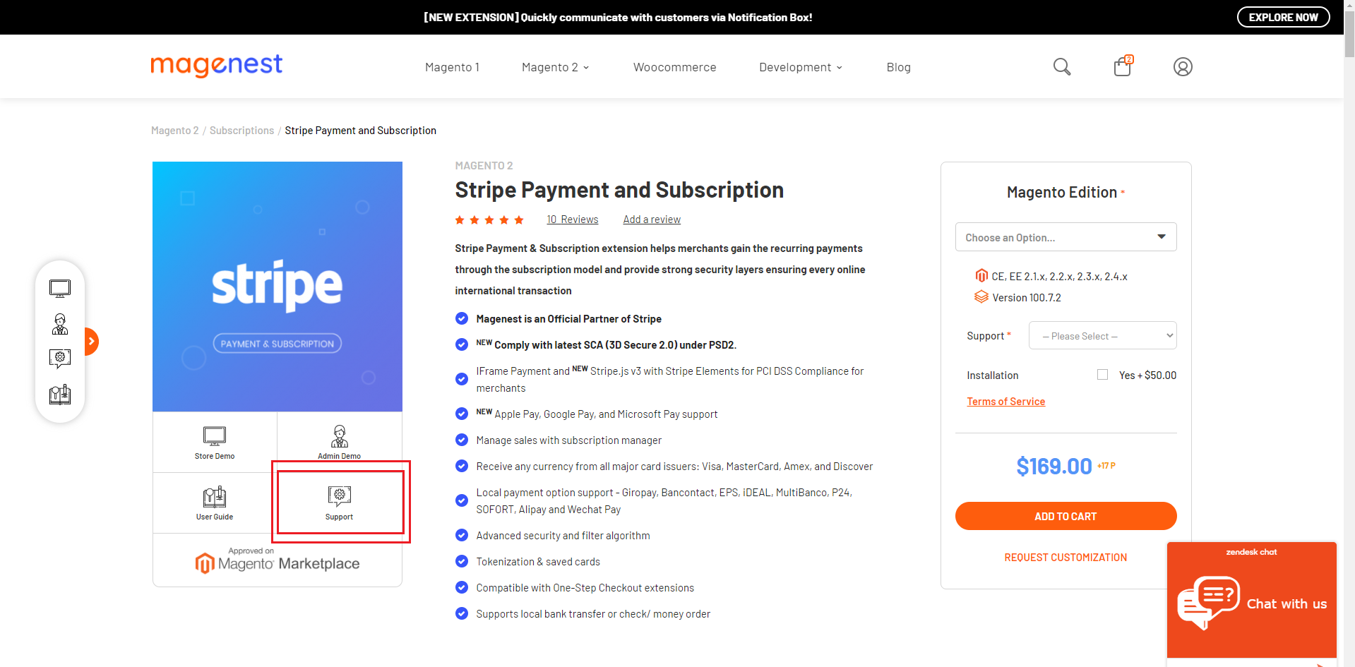 We use Jira as our support system, each of Magenest’s extension has its own support portal that you can find its link in the product page.